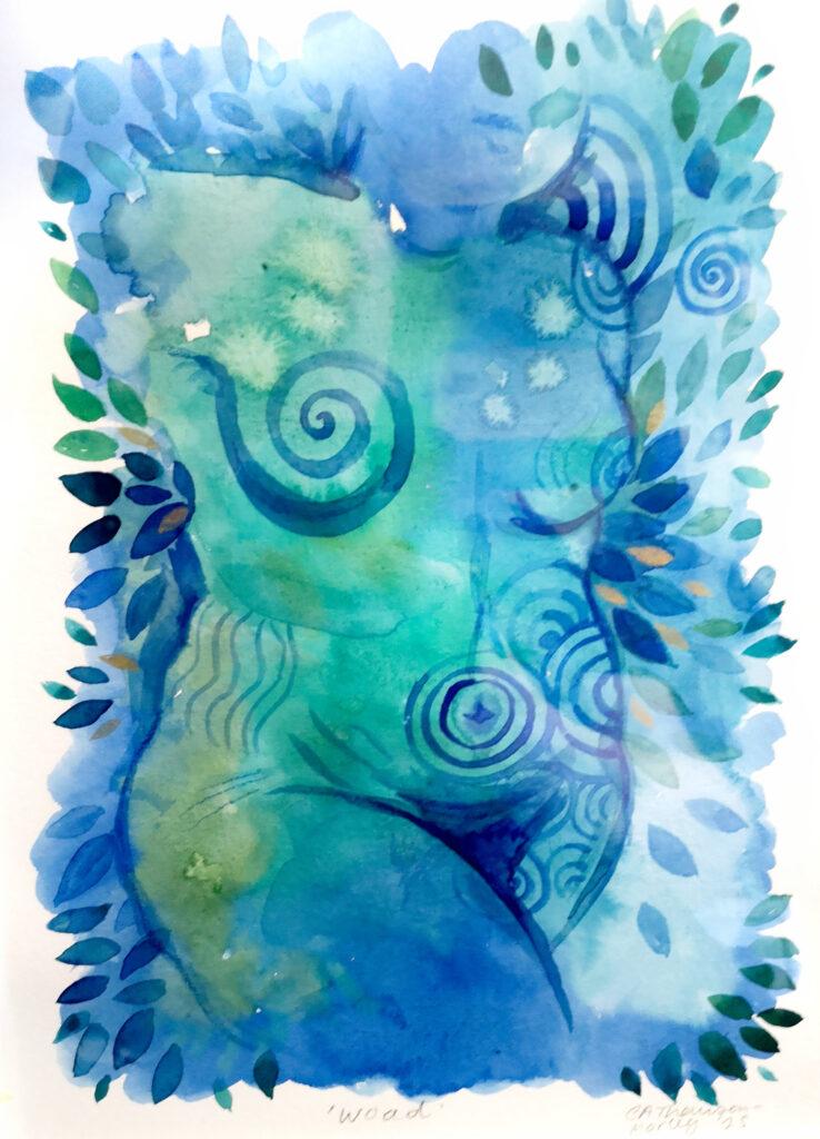 This series is an exploration of paints created using natural plant and mineral based pigments. A technique of free-painting was utilised, where there is only a loose plan for the artworks allowing for free response to the media during the creation process. Loosely based on early European Goddess sculptures such as the Venus of Willendorf.