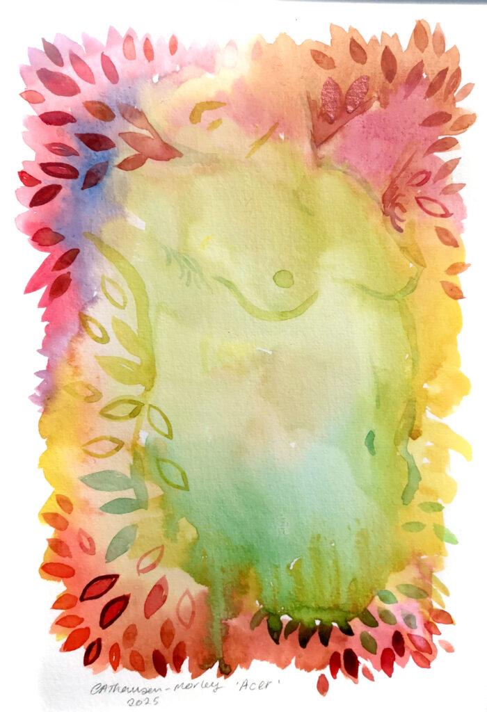 Media-led pieces created in watercolour on paper. Each piece started with the premise of an abstract, foliage-like background, using Pareidolia (the tendancy to make meaningful images from abstract forms) to see figures in the abstract and then delineate them.